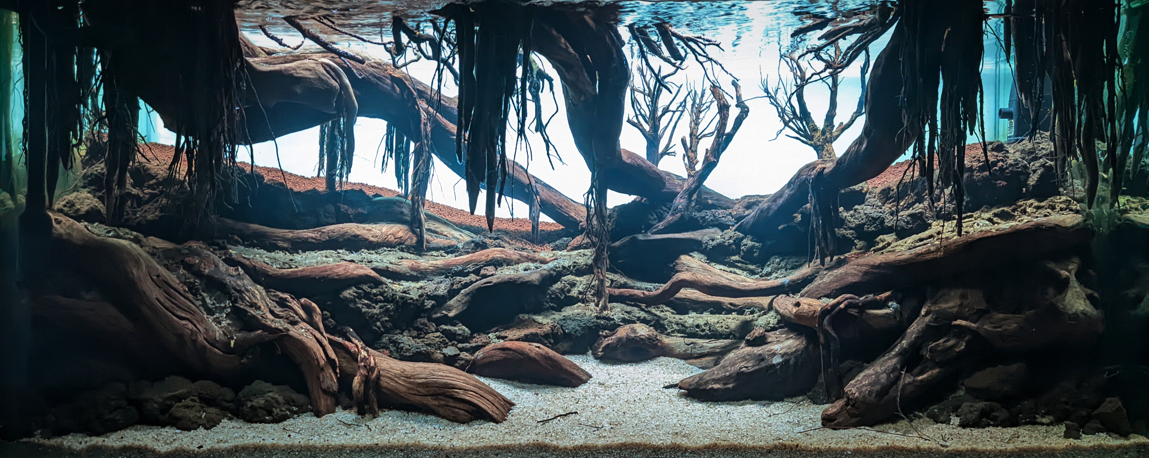 An incredible visual feast!! In terms of first impression and impact, this tank is undoubtedly the best in this contest, or even in all the contests this year! it has the ancient, melancholy and even eerie feeling that is not often seen in the aquascaping contest. although the structure lacks a bit of layers, but the creators use the overhanging wood cleverly to create a beautiful perspective that make up for the lack of layers. The fine vertical hanging roots add details and the mysterious feeling, their positioning also creates a nice contrast to the brighter spots at the background! Overall, it is a really fantastic layout with originality!