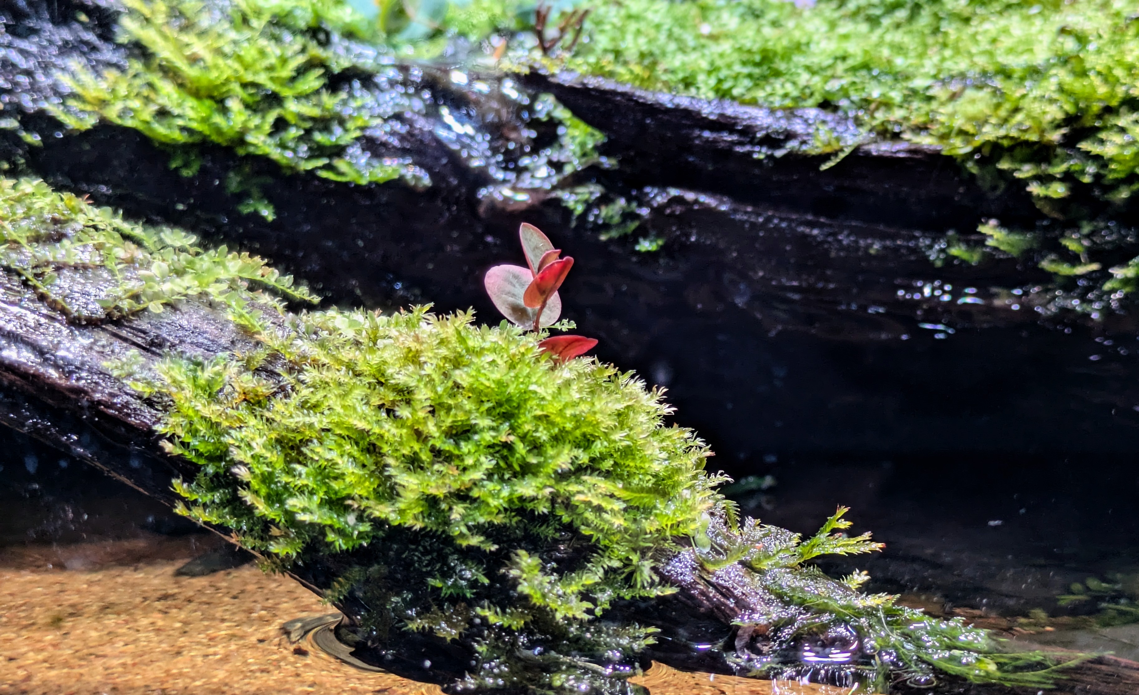 Such a fun Paludarium. The wood is so dramatic but is not dominating or overbearing at all, it just fits the space well and has great flow. Your planting is harmonious with the hardscape and the plants them selves look impeccably healthy. I commend you for fully utilizing the water section, which is often overlooked or under developed in these contests. You made the transition from aquatic to terrestrial plants look seamless. My only nit pic is, I wish I could see the shrimp in the tank. Great work.