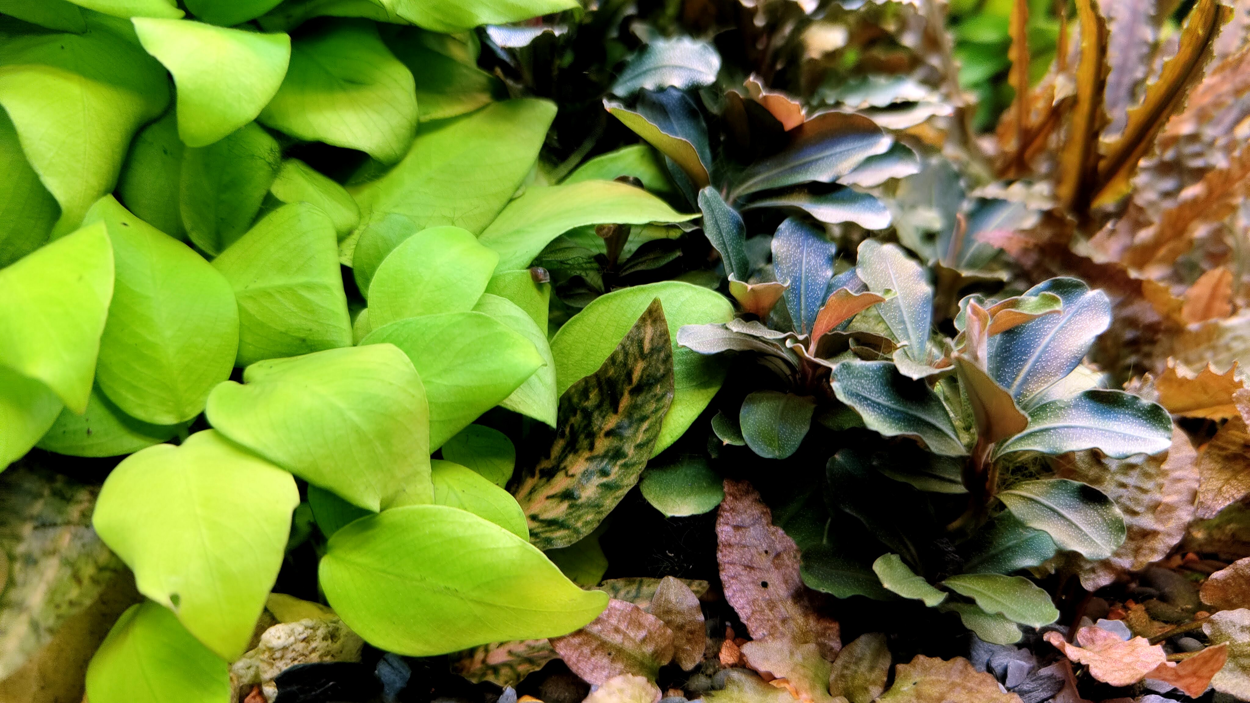 Anubias nana “Pinto” Anubias nana “Gold” Anubias nana “Marina” Bolbitis heteroclita 'Difformis' Bucephalandra Theia Bucephalandra Biblis Bucephalandra Catarina Bucephalandra Green Cryptocoryne nurii “Rosen Maiden” Cryptocoryne albida 'Brown' Cryptocoryne sp. "Purpurea" Cryptocoryne spiralis red tiger Cryptocoryne sp Flamingo Cryptocoryne wendtii “Green Gecko” Erect Moss Potamogeton gayi Microsorum Pteropus Microsorum Pteropus 'Windelov' Monosolenium tenerum Hemianthus Callitrihoides Vesicularia dubyana