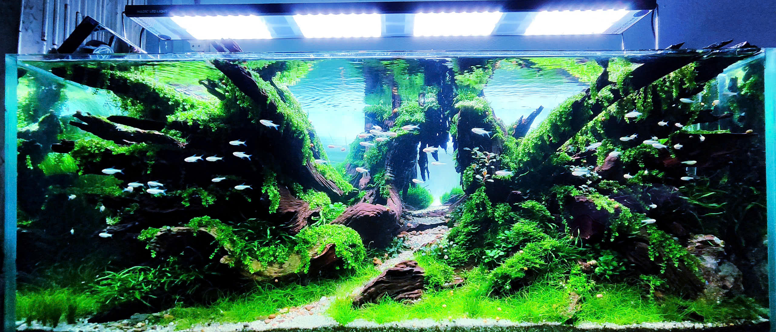 "Regeneration" represents the rebirth of nature after destruction. The aquascape is inspired by the image of an ancient forest, where fallen trees become the foundation for new life. Mosses and aquatic plants cover the decayed wood, symbolizing resilience and the endless cycle of life. The pathway leading through the center creates a sense of hope, guiding the viewer toward the light beyond. Fish swimming freely among the plants bring vitality, completing the harmony of this miniature ecosystem. Through this work, I want to convey a message: even after collapse, nature always finds a way to regenerate and flourish again.
