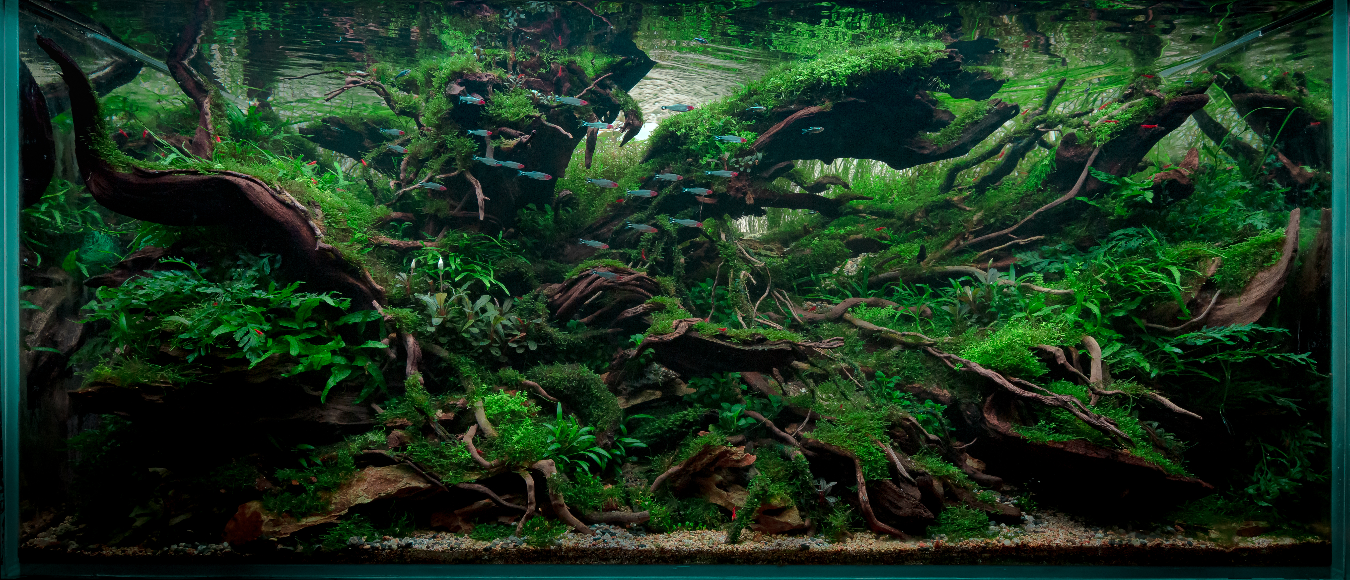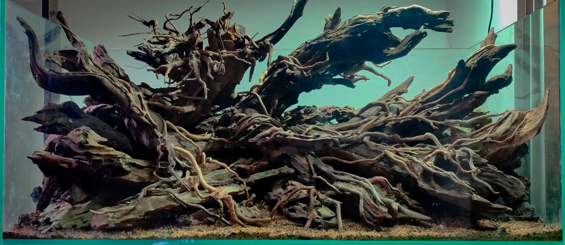 The Title of the work is " Tempest". Tempest as we know depicts a violent storm. From my childhood i was captivated by this wild and turbulent mood of nature! Storms are chaotic, wild and yet beautifil in the same breath! The aquascape is reflective of the tension created by the storm as it billows through the forest canopy! The branches lean with the stormy gusts and at the same time provides shelter to all the livebearers dwelling amidst the canopies! Nature is captivating in most mysterious ways and we as aquascapers want to capyure every mood of Mother Nature through our creations!! Hope you like it!!