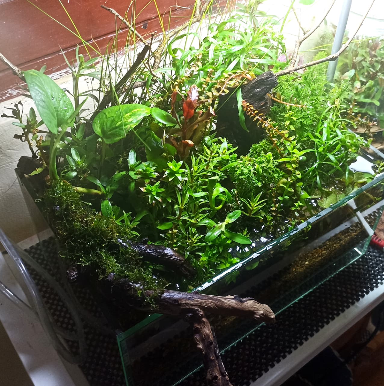 Eleocharis Montevidensis, Nesea SP, Rotalla Rotundifolia Red, Weeping Moss, Myriophyllum Aquaticum, Limnophila SP Belem, Alternanthera Reineckii, Tonina Fluviatis, Hydrocotyle Verticillata, eichornia diversifolia, Variegated Pothos