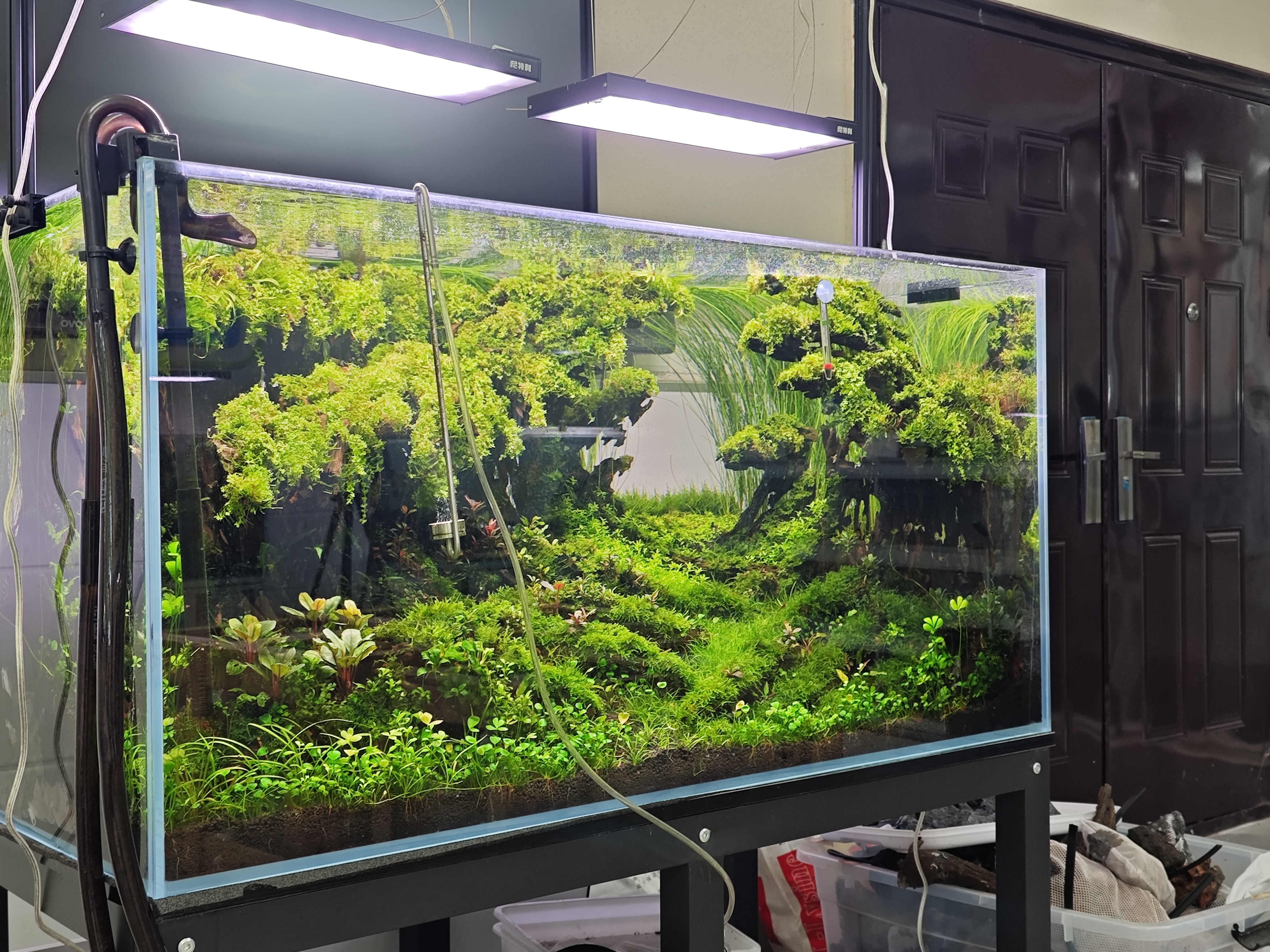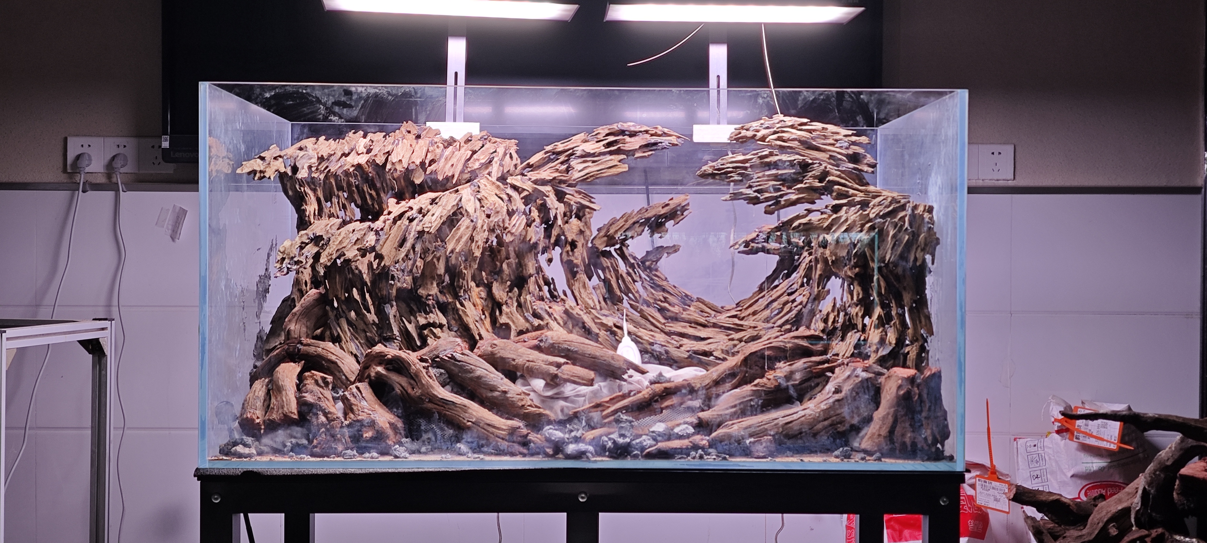 The theme of this work is sea waves. Inspired by the surging waves in Bali, I used shrimp wood as the hardscape to build the body and curl of the sea waves, reflecting the soft, unrestrained yet powerful state of the waves. This aquascape comes from nature, miniaturizing the surging waves in the fish tank. It is the yearning and reproduction of human beings for the beauty of nature.