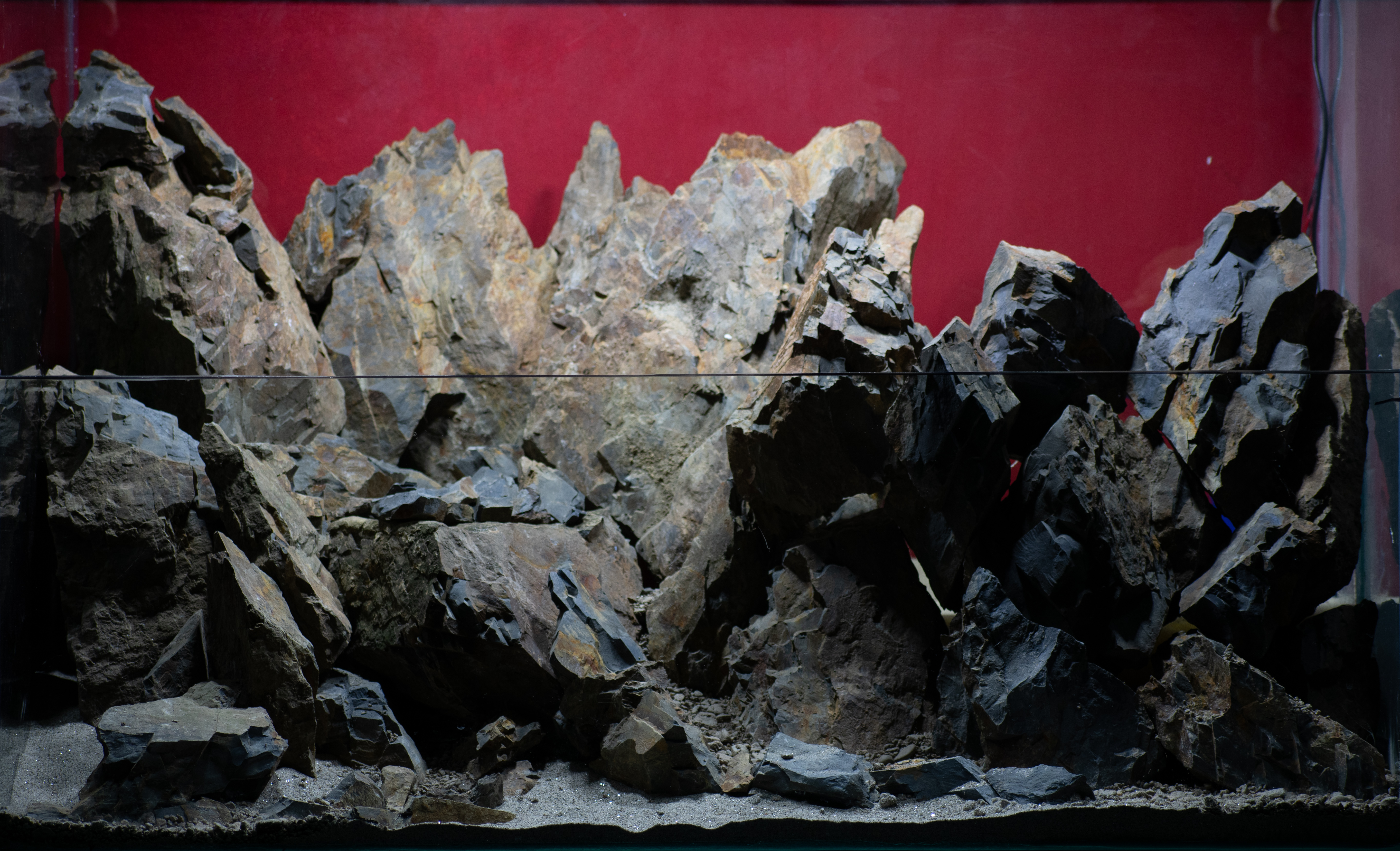 This is beautiful paludarium that does a great job of referencing its inspiration. The hardscape is beautiful, giving direct and clear indications to a mountain range. The transition from the emergent to submerged portion is incredibly smooth, not sudden. The submerged portion suffers lightly from yellowing, but otherwise provides a great transition from life above.