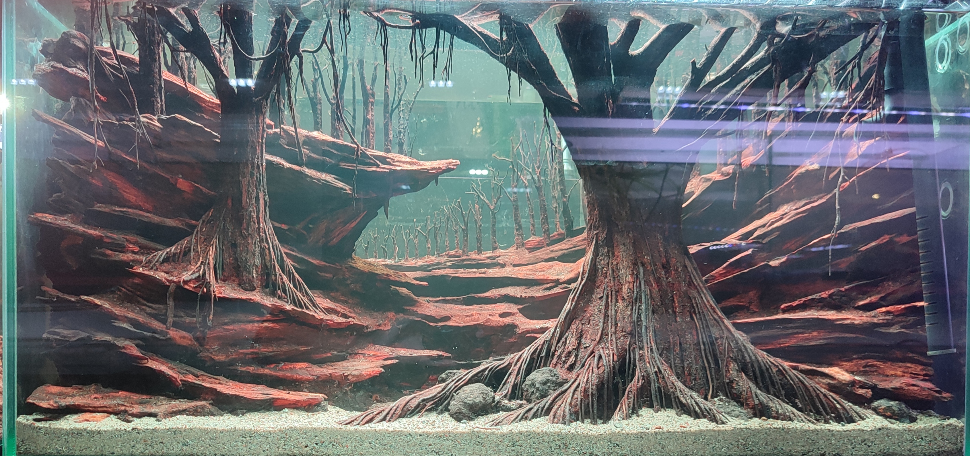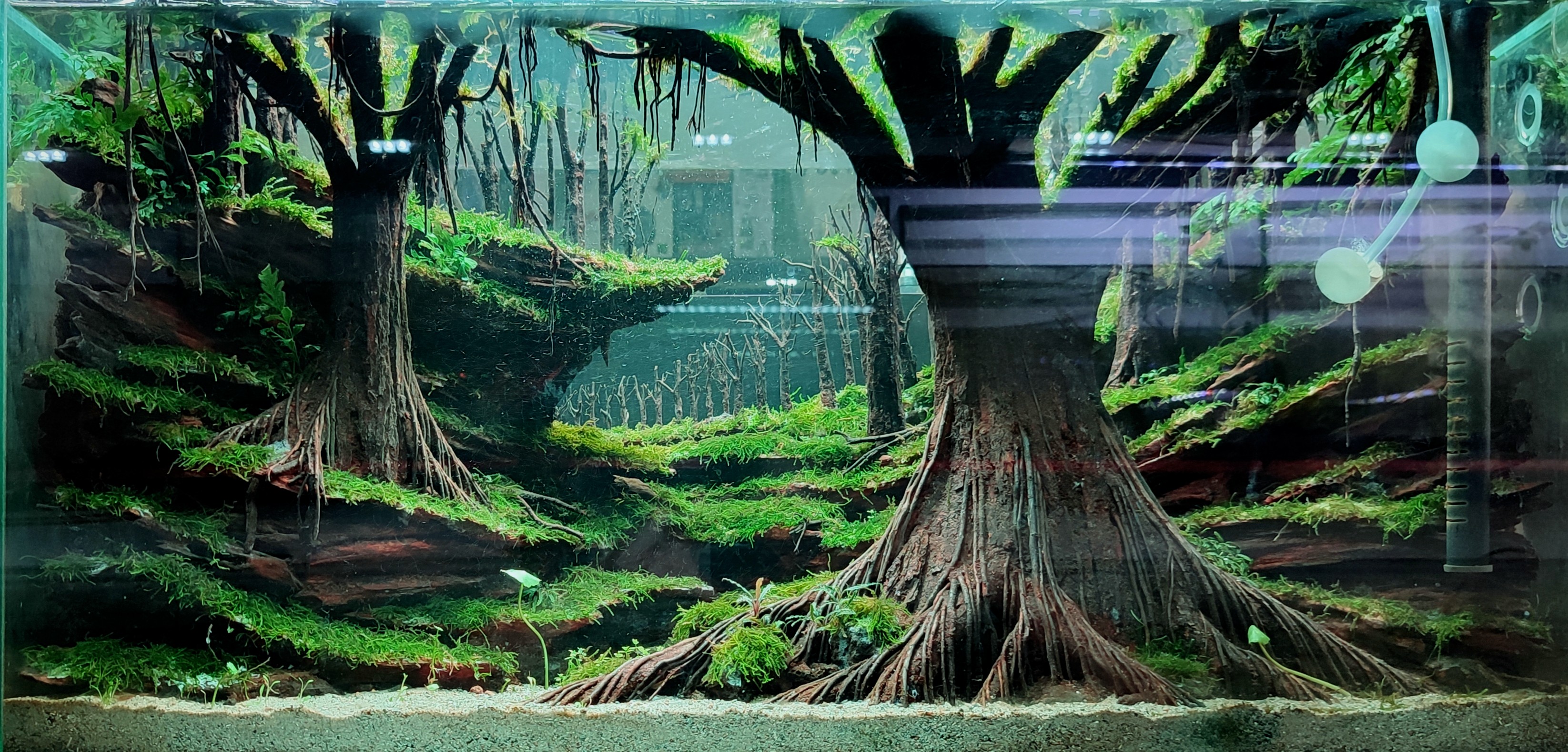 Excellent work. An extraordinary diorama, a fantasy forest where each element has been placed to the millimeter. Made more to impress than to be believable, that's the only fault I see in these Indonesian-style setups. The row of trees at the vanishing point... looks more like a man-made crop than the result of chance. The planting is good, healthy and well maintained. Congratulations.