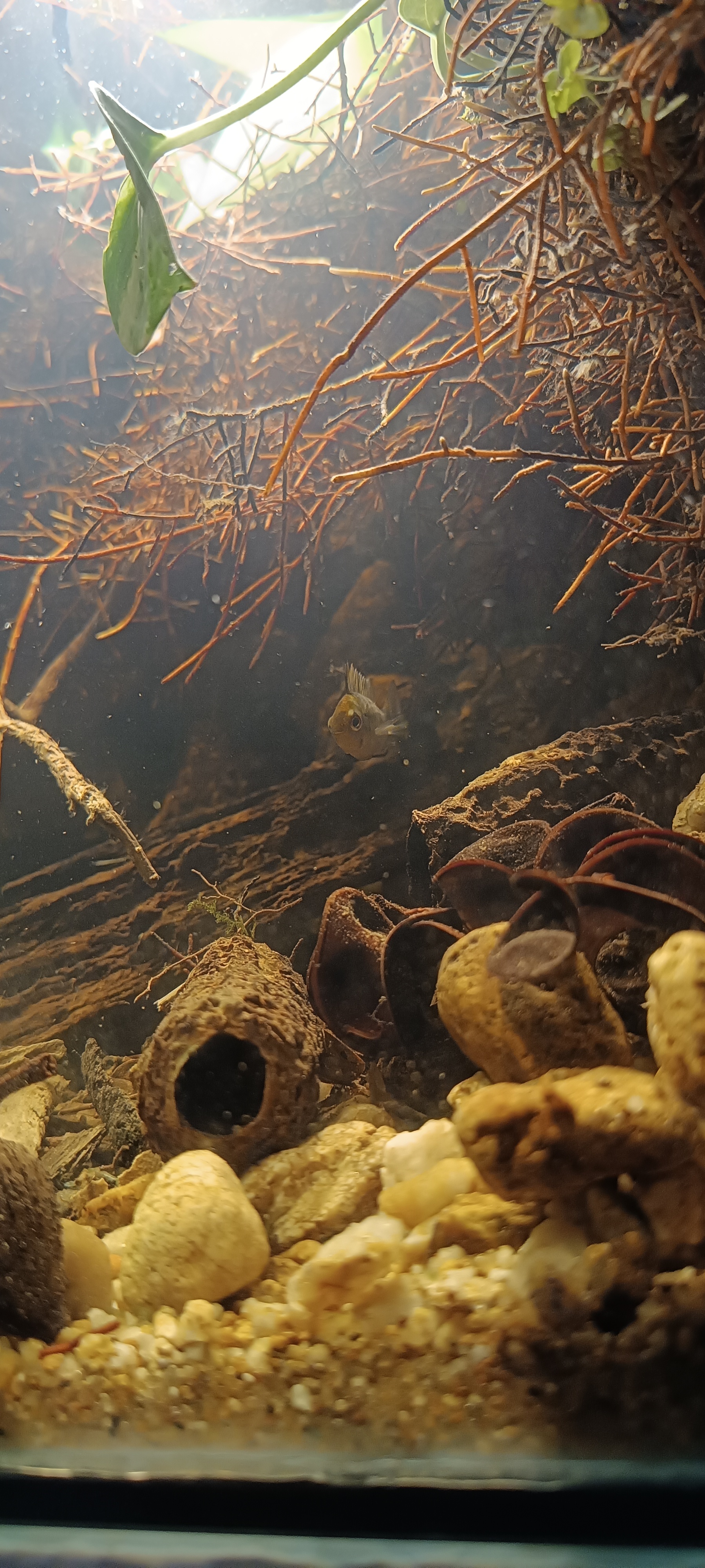 This is a display where the author has clearly done their research and worked to put together a realistic and authentic layout. Unfortunately, it loses points due to the use of an ornamental for of M. ramirezi, which does not occur in the wild and because the tank feels somewhat too small, even for just two individuals. This species can grow to become a sturdy fish and long-term, would require more room than they are provided with here. However, I do want to highlight the use of the fine roots as particularly effective.