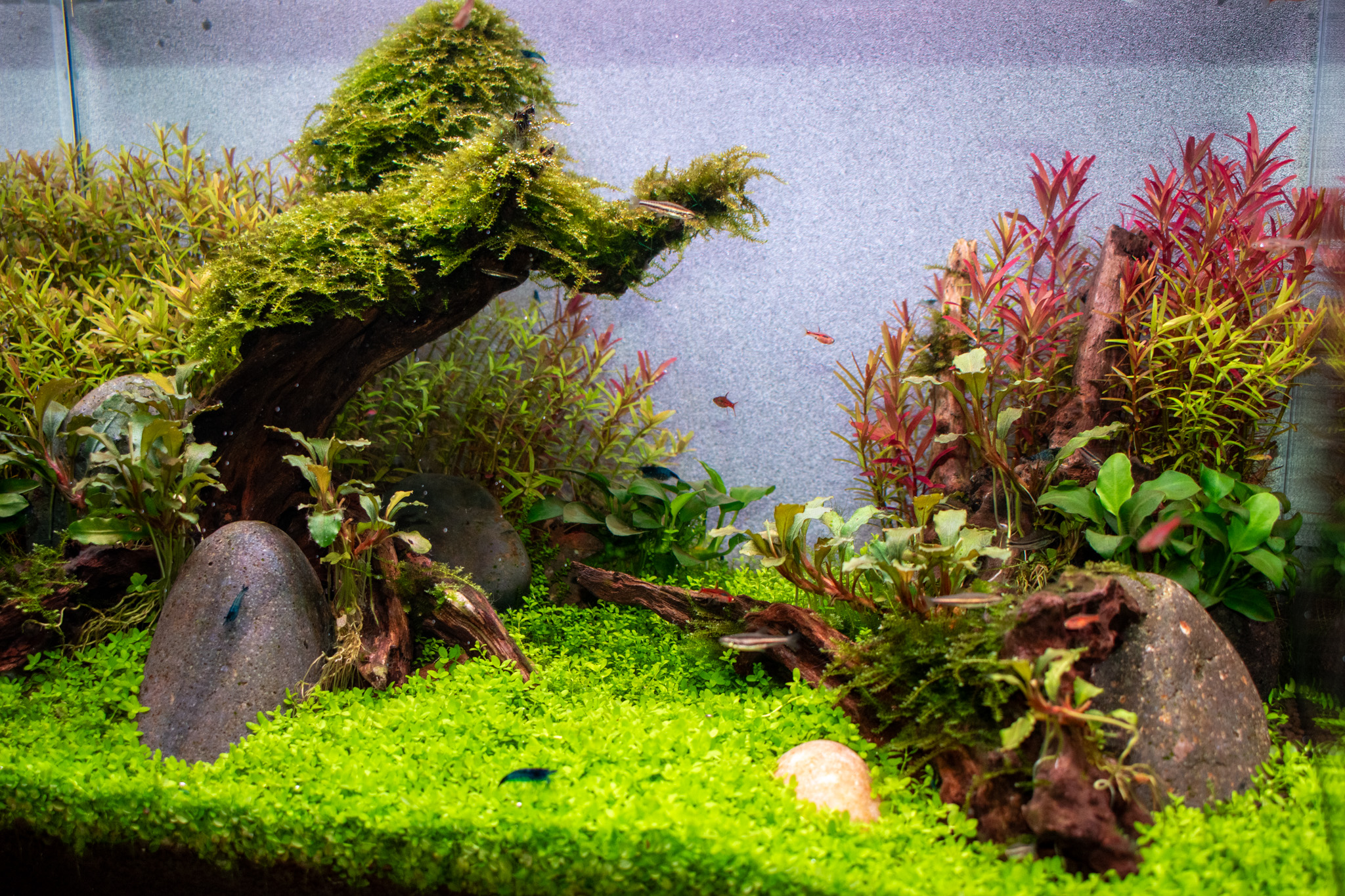 rotala rotundifolia blood red, rotala indica, bucephalandra, anubias nana petite, Micranthemum 'Monte Carlo', Hemianthus Callitrichoides 'Cuba', Christmas Moss