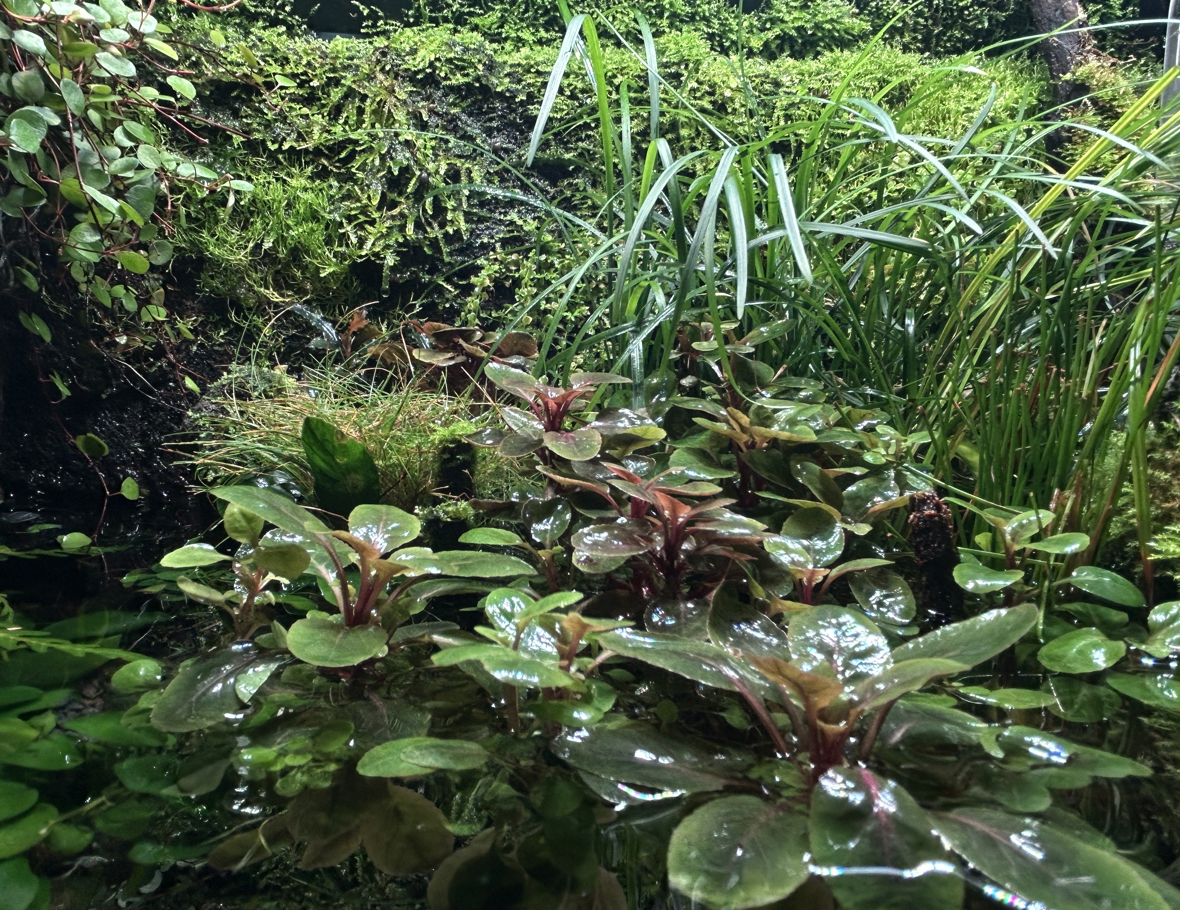 bucephalandra (kedakang, brownie purple, deep purple, pygmea bukit kelam, brownie ghost, batang kawa), lobelia cardinalis mini, micranthemum montecarlo, anubias (barteri nana, pangolino, golden), littorella uniflora, ophiopogon japonica, hygrophila pinnatifida, muehlenbeckia complexa, taxiphyllum spiky moss, vesicularia christmass moss, eleocharis acicularis, cyperus helferi
