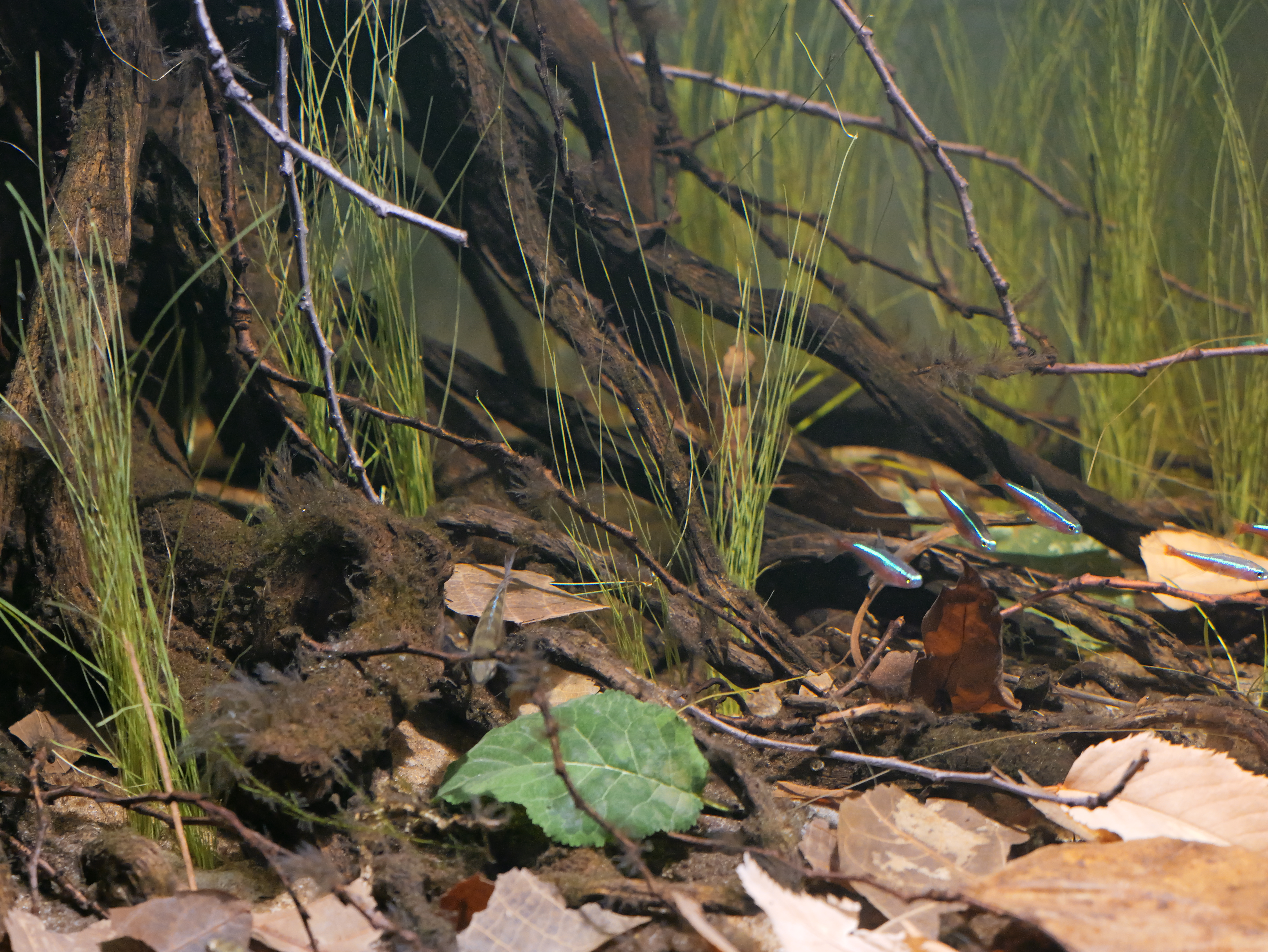 A very well made aquarium, the elements, the composition are correct, the roots with algae and the length of the Eleocharis shows maturity of the aquarium, a little detritus would be appreciated and light management with a darker water color, in terms of depth management it is very well done. Many congratulations!
