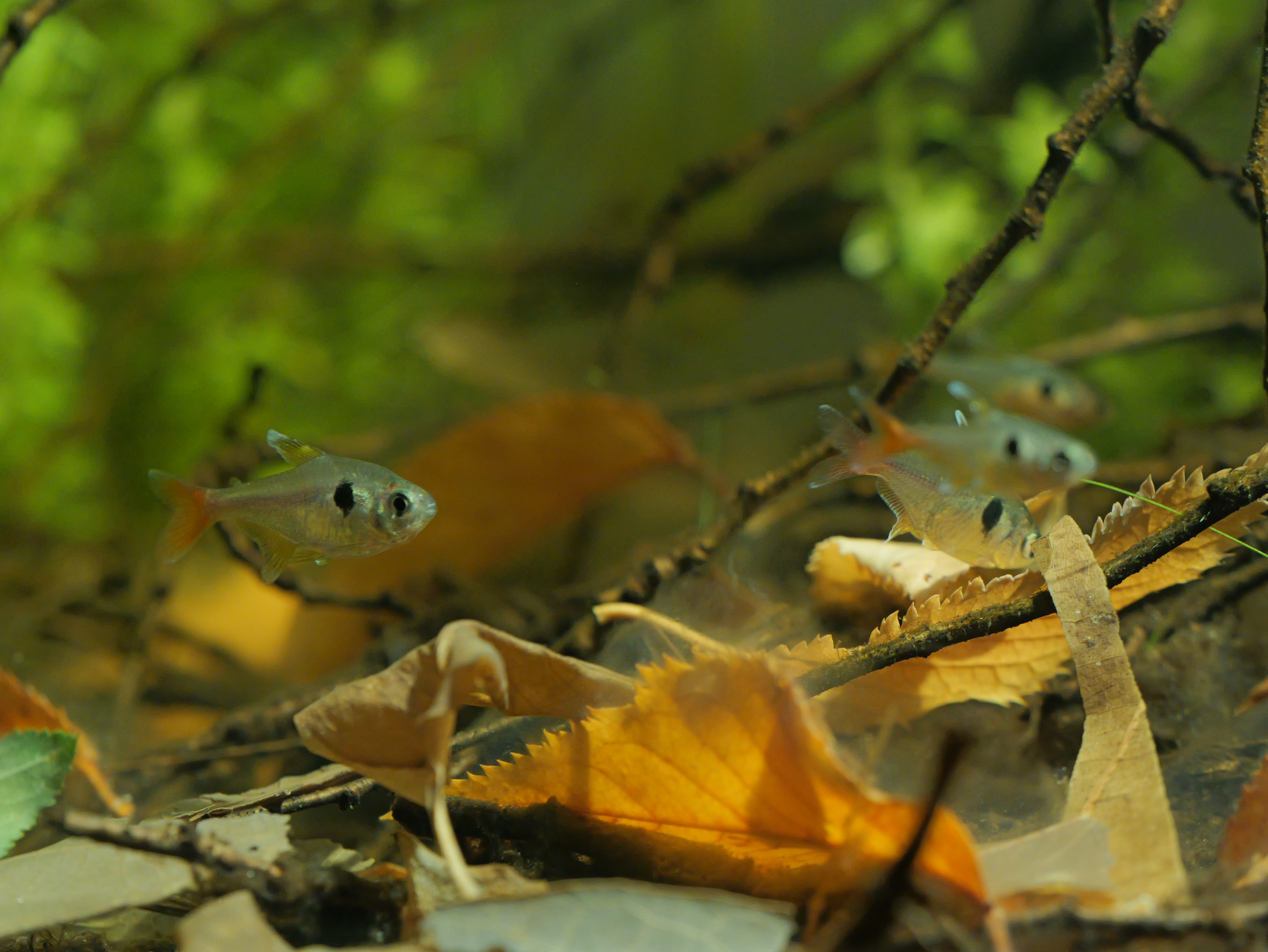 The Maroni River flows through the Guiana Moist Forests ecoregion. It rises in the Tumuk Humak Mountains and forms the (disputed) border between France (French Guiana) and Suriname. It is also known as the Lawa in its upper reaches and as the Litani near its source. The Litani, Lawa, and Maroni have a total length of 612 km (380 mi). Two nature reserves are located in the estuary on the Surinamese side of the river, near the village of Galibi. These provide protection for birds and hatching leatherback sea turtles. The area where I created the biotope represents a small stream tributary flowing through a forested area. Water parameters are 27 degrees Celsius, 5.0-6.5 pH, 0-80 microsiemens, and 0-1 kH year-round. Fallen leaves and branches stain the water to a tea color, making it acidic and soft. I‘ve been following the Guyane Wild Fish page on Facebook for many years and was fascinated by the roseus tetras I saw there. I was captivated by the small rivers where they lived and their characteristics. I was impressed by the aquatic beauty I saw in the region and wanted to create such a biotope. The ground was light-colored fine sand, abundant dry leaves and dried botanicals, thin dry branches, and driftwood. A plan was given for the shoreline of a small stream. Deionized water was used to mimic the softness of the water in the area. This ensures 60 ppm TDS, 0 kh, 6.0 pH, and a temperature of 27 degrees Celsius. The aquarium contains no NH3. I make regular measurements in the aquarium and perform water changes when organic load is detected. Referances: Ecosystem services in the Maroni river bassin - ECOSEO Project PDF (www.wwf.fr) https://www.oneearth.org/ecoregions/guianan-freshwater-swamp-forests/ https://horizon.documentation.ird.fr/exl-doc/pleins_textes/divers20-10/010012214.pdf https://www.researchgate.net/figure/Maroni-River-and-estuary-a-Location-of-the-Maroni-River-and-estuary-black-rectangle_fig1_342771715 [accessed 22 Sept 2025] https://www.facebook.com/guyanewildfish https://www.wwf.fr/sites/default/files/doc-2022-11/Ecosystem%20services%20in%20the%20Maroni%20river%20bassin%20-%20ECOSEO%20Project.pdf