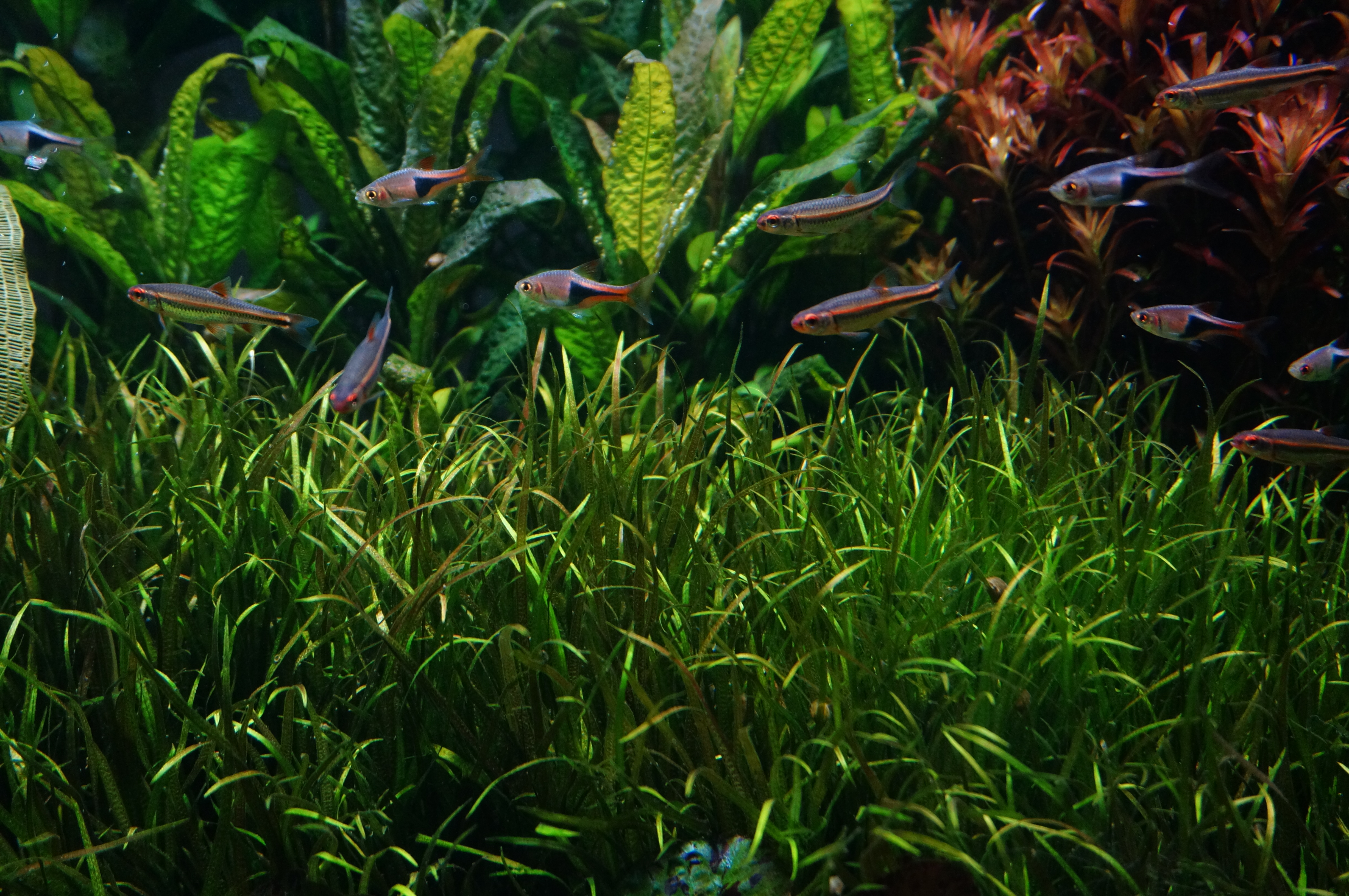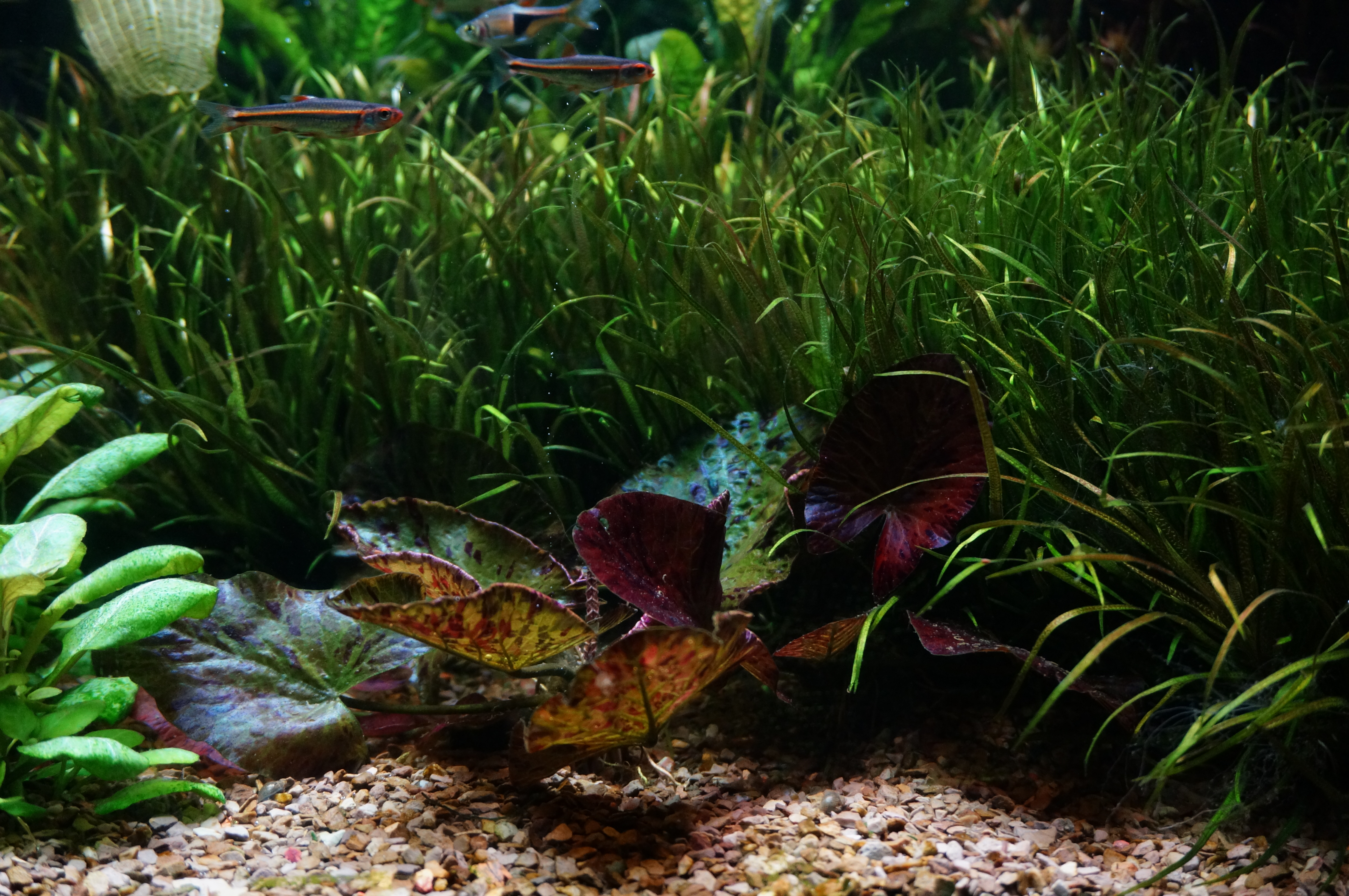 Trigonostigma heteromorpha, Notropsis chrosomus, Mikrogeophagus ramirezi, Ancistrus spp