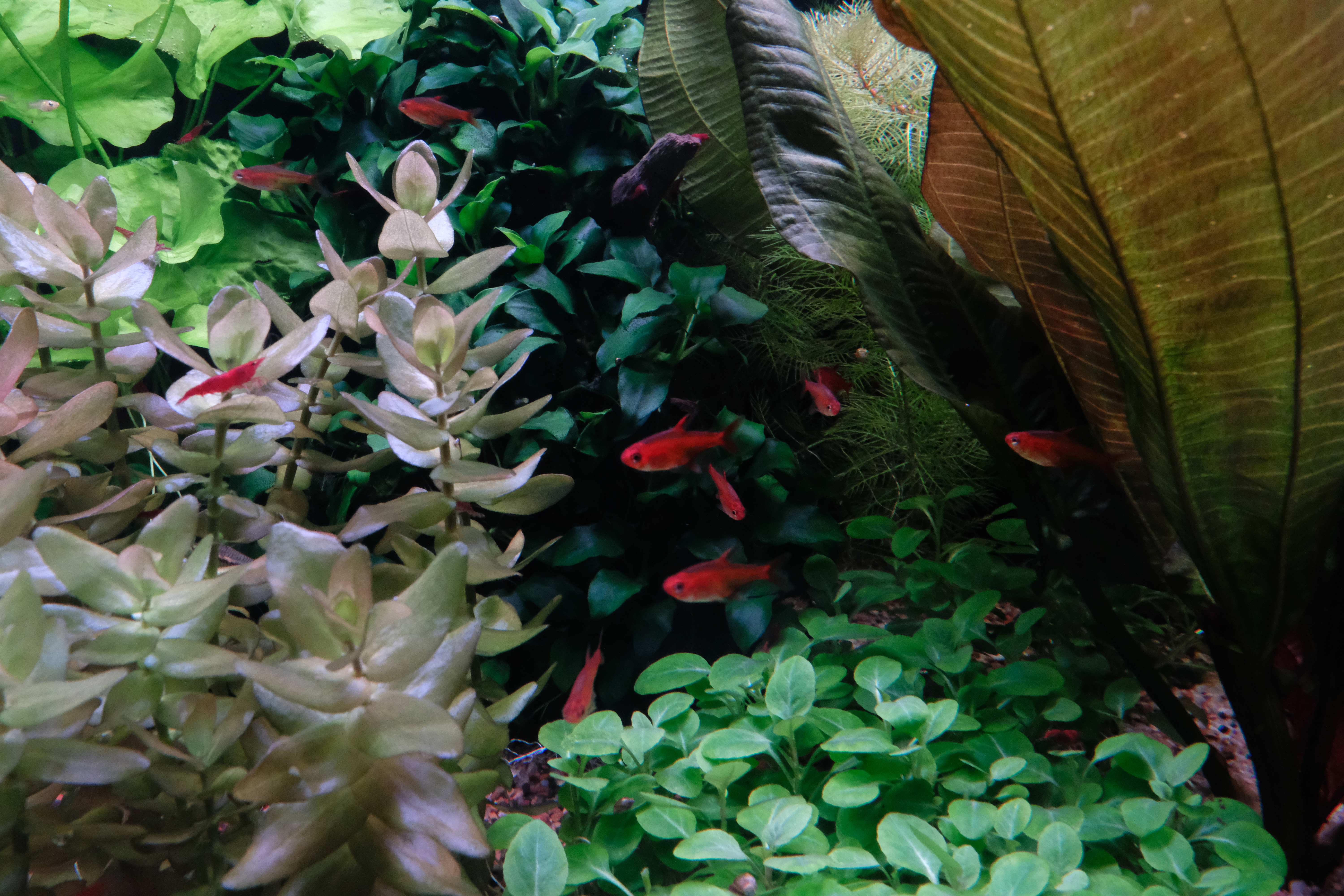 Hyphessobrycon amandae, Poecelia reticulata "Japan Blue-Gold", Neocaridina davidi
